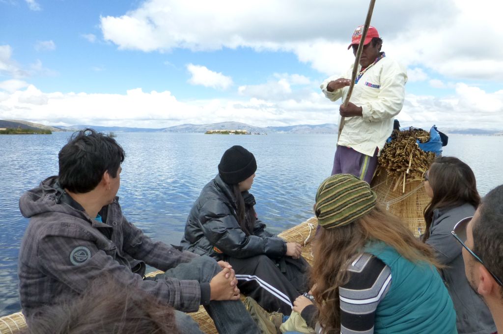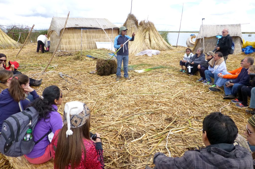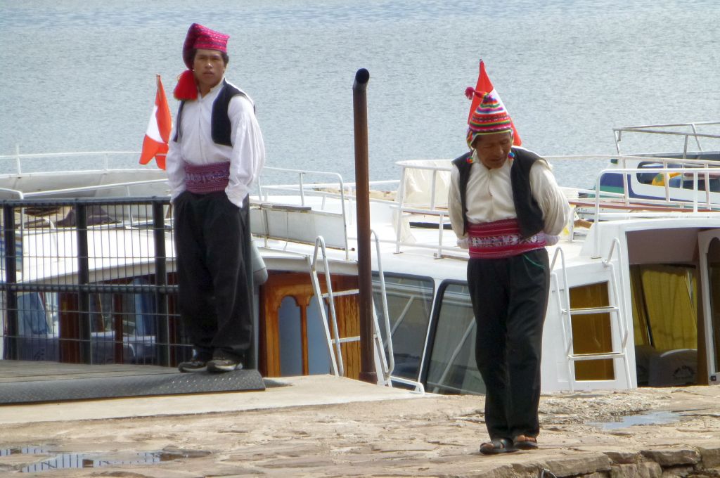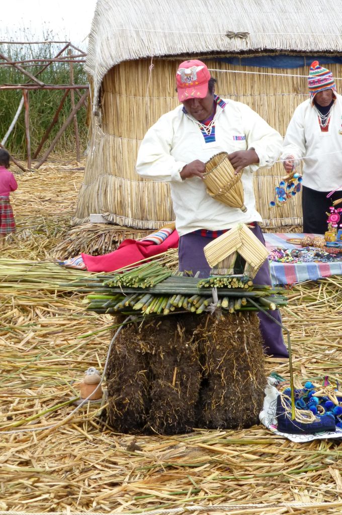 Die Inseln sind verankert, sonst könnte es ja passieren, dass sich die eine oder andere plötzlich in bolivianischen Gewässern wiederfände … Diese Menschen leben vom Tourismus, und sie geben sich Mühe, ihre originalen Wurzeln zu behalten.